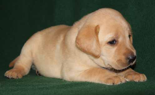 This little girl was chosen by a little girl. All of Charlie and Goldie's pups are going to be very nice, so I don't think Mom could have gone by allowing her daughter to choose. Here is the daughter choosing "Nickel." You think the name will stick??