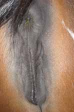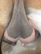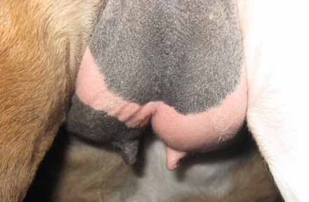 April 23, 2008: You can see where the vulva has lengthened and the bag has filled a bit more so that there are no wrinkles in it. The teats still are pointing inwards a bit