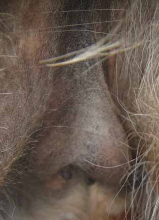 2/16/12 Some unexpected things developed today. Justine now is wearing the foaling halter and is bagging up gradually, but the surprise was when I checked Sam's bag. She is also filling up.