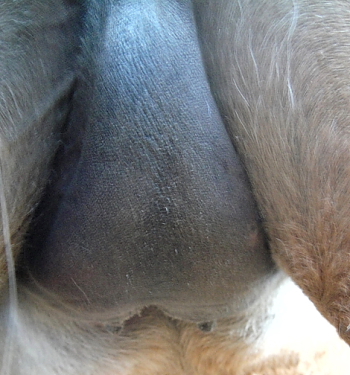 Justine is finally busting full! We have watched her bag fill over the last few days and her bag has gradually gotten fuller and fuller. Tonight, there were big changes. The bag went from soft to hard and very full. Her teats are finally pointing straight down and the vulva elongated. We are unable to get any milk to test, but she is a maiden. I have the camera laid out, I am sleeping with my Carhart by my side and we are praying for a good outcome. This will be our first Beamer baby!!! And, we adore our Justine, despite her ornery pregnancy moods.