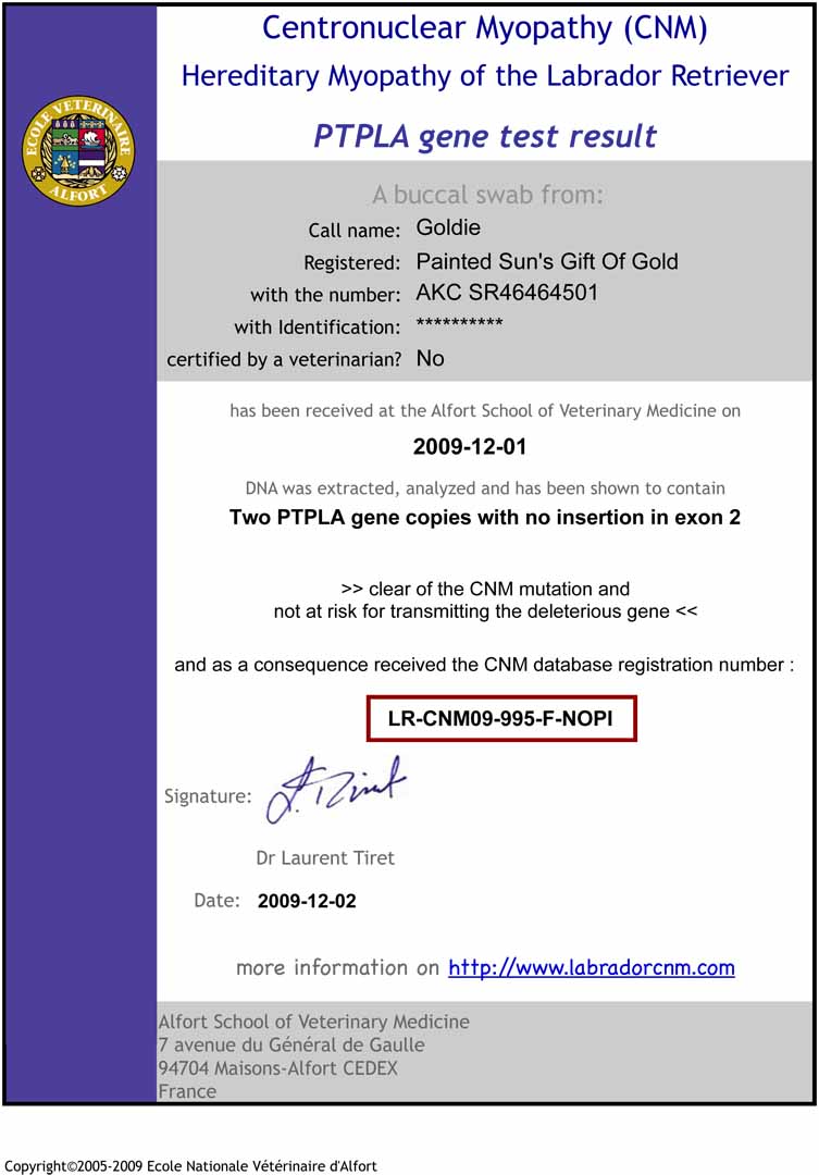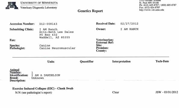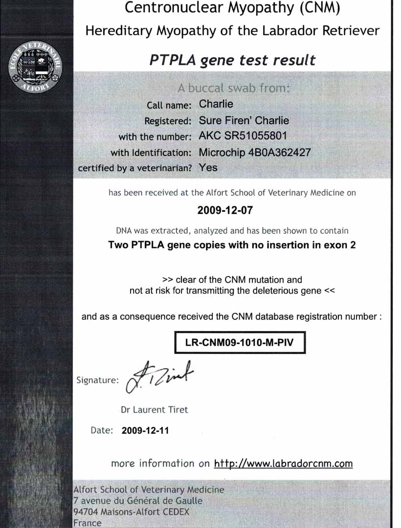 Home Articles Contact us Labrador Retrievers Miniature Horse For a puppy to be affected by EIC or CNM, both parents have to be either affected or each parent has to be a carrier. If one parent is clear for both conditions, the puppies cannot be affected. Annie's parents are Dandy and Chester, and neither of them were carriers for these conditions. EIC