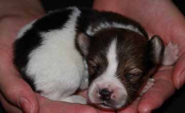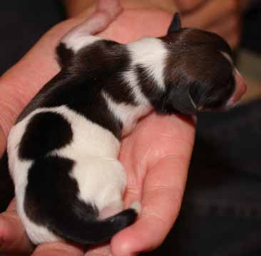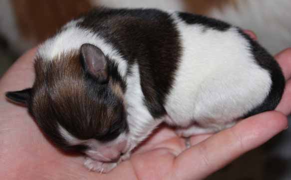 June 13, 2010 This newborn boy has lots of black in his markings and may end up being a tricolor.