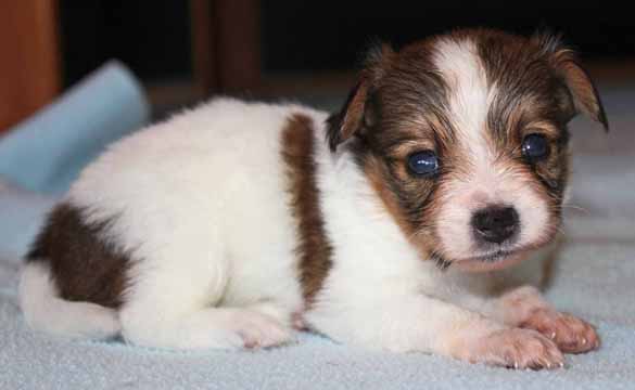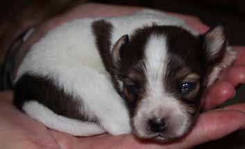 June 13, 2010 There are some spots on this newborn Papillon boy that are half black and half brown!