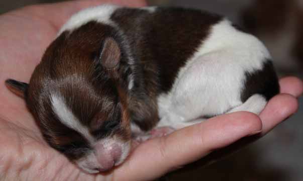 June 27th, and this little Papillon's eyes are slits....so close to opening! Some of the boy's eyes are open