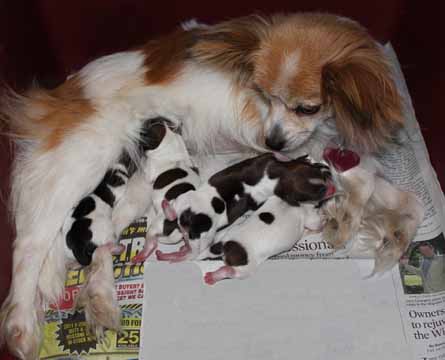 Papillon. Two hours later, Joy was nursing 4 beautiful puppies. You