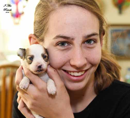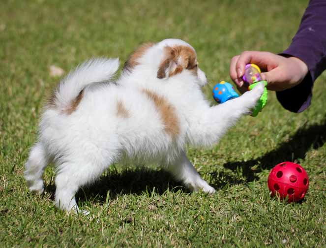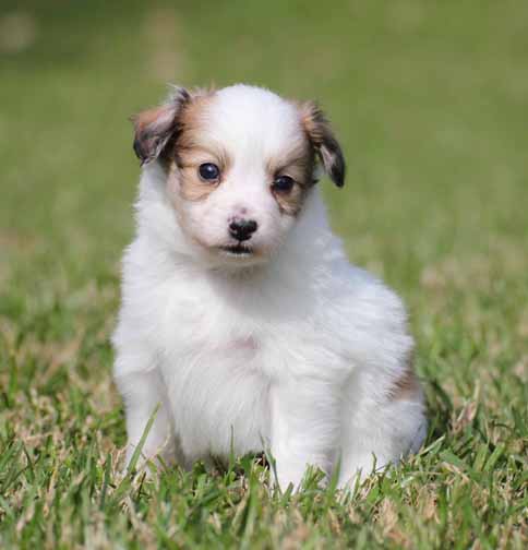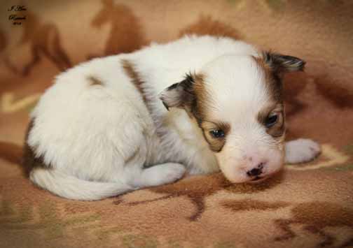 Home Articles Contact us Labrador Retrievers Papillons Miniature HorsesPapillon Boy 4 Reserved by Chase Click here to see him playing with my daughter. He is 9 weeks old 9 weeks!! And, a ball of fluff and fun! This little boy is the most outgoing in the litter. He is very inquisitive and happy! He will mature on the bigger side at about 10 pounds. His ears are just beginning to think about standing up....especially his right ear. I suspect that his ears will stand up one at a time, and should make for very funny pictures for a few days. See the one ear trying to stand up? Too cute! Magi, the father weighs 4.5 lbs and Noel, the mother, weighs 10.3 lbs Click here to meet a previous relative of his who just qualified for AKC National Agility competition!!! Click here to see a previous litter by these 2 dogs.