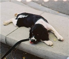 walking along sniffing EVERYTHING!! She sits. She stays. She